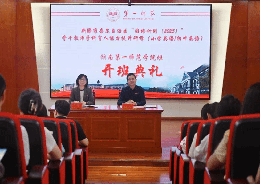 5月8日上午8时30分,由公司承办的新疆维吾尔自治区“国培计划(2025)”骨干教师学科育人能力提升研修(小学英语/初中英语)项目在特立北112正式开班。此次研修聚焦教师队伍专业素养提升,旨在为新疆中小学英语教育注入发展新动能,推动区域教育优质均衡发展。伟德国际1946bv官网副经理王佳娣,国培项目首席专家刘明东,项目班主任梁薇、刘洁文、张明、廖嘉琰出席了开班典礼。