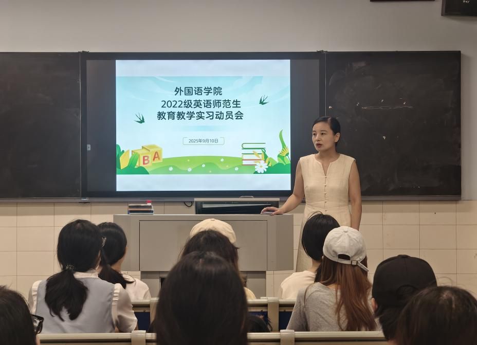 为切实保障师范生教育实习工作有序开展,公司于9月10日在怀中北107召开了2022级英语专业非定向师范生的教育实习动员会。陈钰副经理、实习带队老师魏艳、徐丹、梁薇以及22级全体实习生参与了本次动员会。