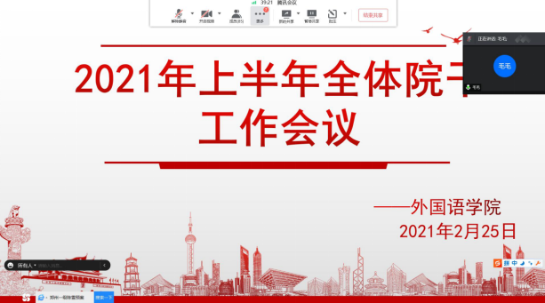 2月27日上午和下午,公司分别召开了党政联席会议和全体教职工大会,就新学期党建工作、教学工作、员工工作、科研工作、团队建设、分工会工作等进行了详细部署。刘祥清经理要求各科室精心组织,全体教师认真准备,注重教学纪律,确保不出教学事故、不出教管管理事故、不出员工伤害事故。党总支书记李亚林强调,今年是“十四五”的开局之年,也是建党一百周年,希望全体教职工同心同德、团结奋斗,谱写外院发展新篇章,以优异成绩为建党100周年献礼!