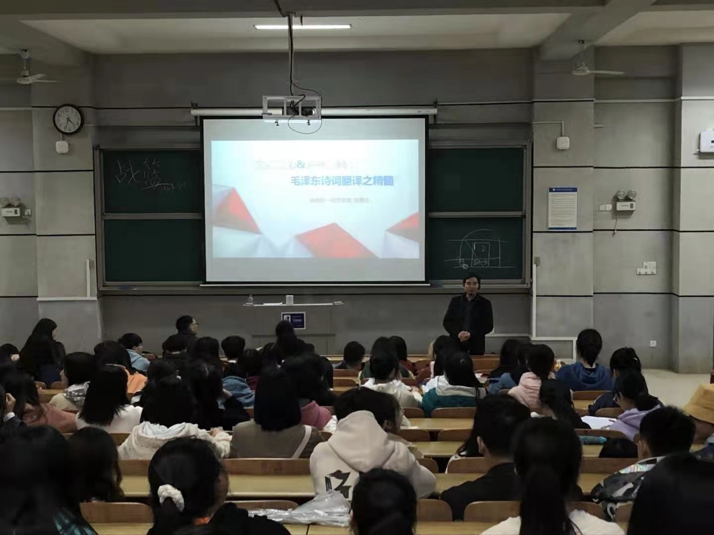 刘教授是“湖南省毛泽东诗词外译研究基地”首席专家,在毛泽东诗词翻译研究领域成果颇丰。其讲座纵横驰骋、大气磅礴,从毛泽东诗词概述讲到毛泽东诗词的英译,从文化图式讲到语言之美,给听众眼前一亮、耳目一新的感觉。这次讲座对公司师生学习和研究毛泽东诗词翻译必将产生深远的影响。