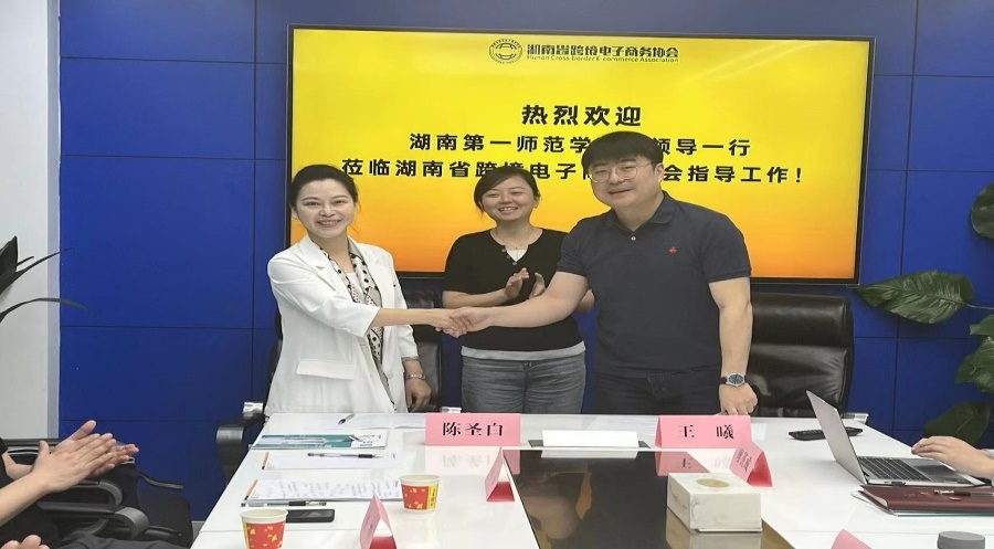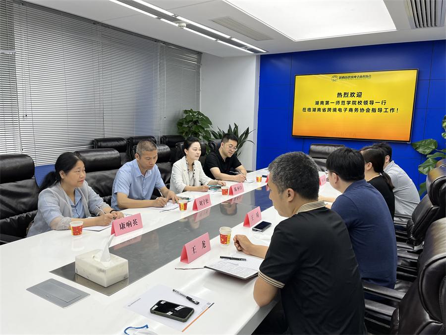 在与湖南省跨境电子商务协会的座谈中,秘书长余芳详细介绍了协会成立情况、协会“十四五”规划内容,并梳理了未来校企合作方向。公司领导介绍了公司专业设置和人才培养情况,针对员工实习见习、课堂实践、校外社会实践、课题合作等内容与协会进行了深入探讨,并初步达成全面合作意向。