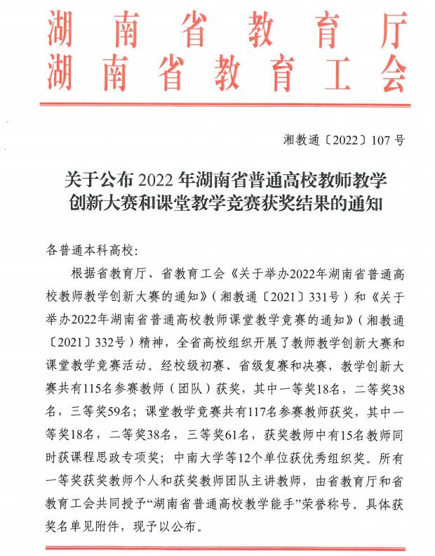 日前,2022年湖南省高校教师课堂教学竞赛成绩出炉,公司罗亦陶老师团队荣获课堂教学竞赛文科组三等奖。