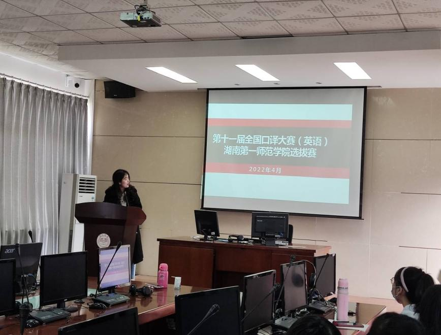 为提高员工综合素养,激发口译学习动力,选拔具备译员潜质的优秀员工,公司于4月19日在同声传译实验室举行了第十一届全国口译大赛(英语)院部选拔活动。翻译系罗亦陶担任选拔评委,共计20余名员工参与选拔。