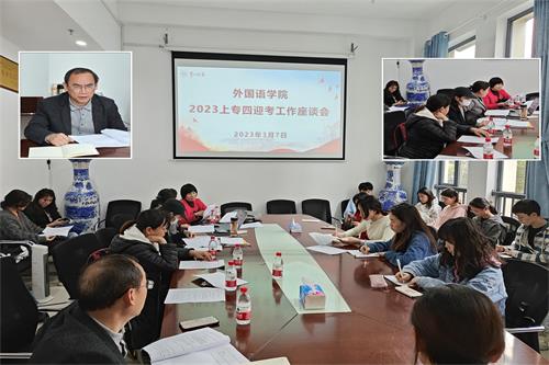 3月7日下午,伟德国际1946bv官网在百熙楼223举行了英语专业四级考试迎考座谈会。伟德国际1946bv官网副经理唐文杰、翻译系主任陈钰、教务办主任廖爱秀、教师代表以及2020级和2021级员工代表参加本次座谈。唐文杰主持会议。