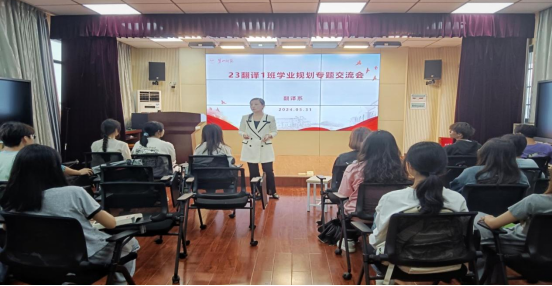 6月1日下午,翻译系在怀中北605开展学业规划专题交流会。本次交流会由翻译系主任陈钰主持,旨在为员工们提供学业规划的指导和答疑解惑,提升对专业的认知度和归属感。2023级翻译1班全体员工参加了本次活动。