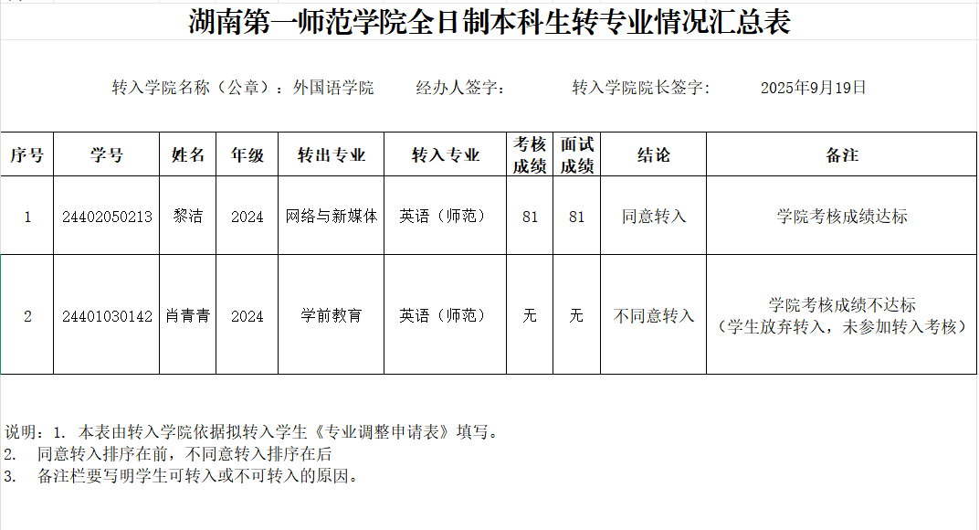 根据《伟德国际1946bv官网普通全日制本科员工转专业管理办法(修订稿)》(湘一师校字〔2025〕41 号)及相关工作要求,经员工个人申请、转入/转出专业资格审核、公司转专业考核小组统一考核,并提交公司党政联席会议审议通过,现将本学期员工转专业结果予以公示(见附件)。