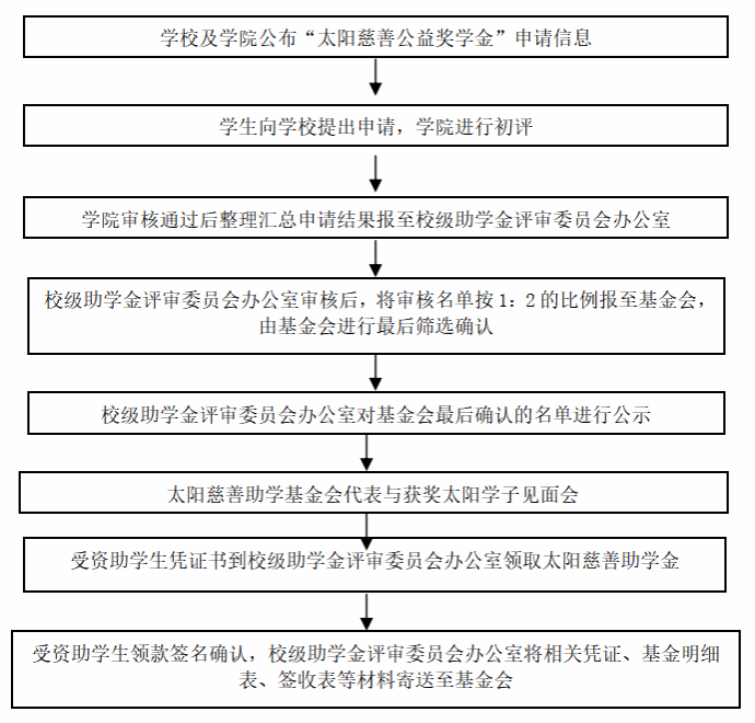 3.自愿进入太阳基金会的评定筛选机制,评定合格可继续获得下一学年的奖资助资格;