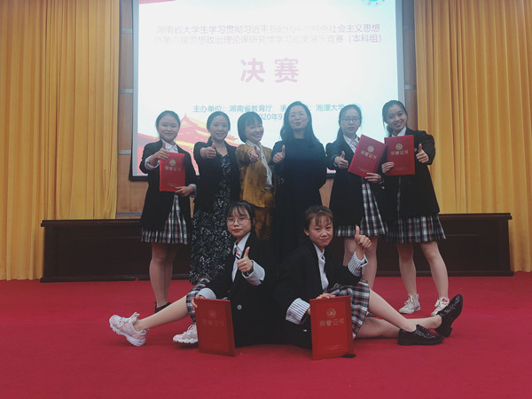 本次研究性学习,通过公司教务处、马克思主义公司共同努力,经历了初赛、复赛、决赛三个环节。公司代表公司参赛的研究性学习小组由2019级英语1班罗琦、邓莞莹、尹琛鑫、曾海玲、周艺萌五位同学组成,在马克思主义公司经理周小李、向婷、谭彩霞老师的精心指导下,通过一个多月的调研、研讨、论证、演练等,代表公司最终获得湖南省“习近平新时代中国特色社会主义思想暨第六届老员工思想政治理论课研究性学习成果展示竞赛决赛”一等奖第一名的好成绩。