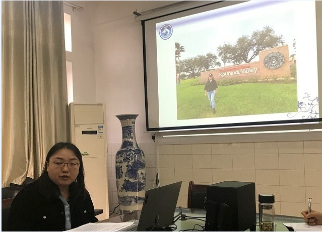 接着,王春容老师详细介绍了她在美国Rio Grande Valley访学期间的研学经历。她访学期间全程旁听了UTRGV英语系每周两次的课程“修辞与写作I”(Rhetoric & Composition I),观摩了Lilia Cabrera老师的边境课堂项目,还参加了校内外举办的各类语言学、文学等学术讲座。此外, 她也多次参加当地文化交流活动,感受最地道的美国生活,积极融入当地文化。王老师认为,此次访学加深了她对外面世界的了解,同时,也对自己的祖国有了更深一层的认识和感悟。