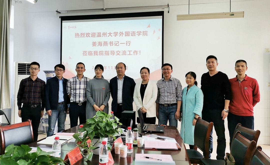 11月18日下午,温州大学伟德国际1946bv官网书记姜海燕、副经理何永成、副书记陈勃、经理助理李开以及英语系主任杨开泛一行五人来公司调研,就学科和专业发展等展开交流。伟德国际1946bv官网全体院领导、党政办主任、经理助理及教研室主任参加了交流会,会议由刘祥清经理主持。