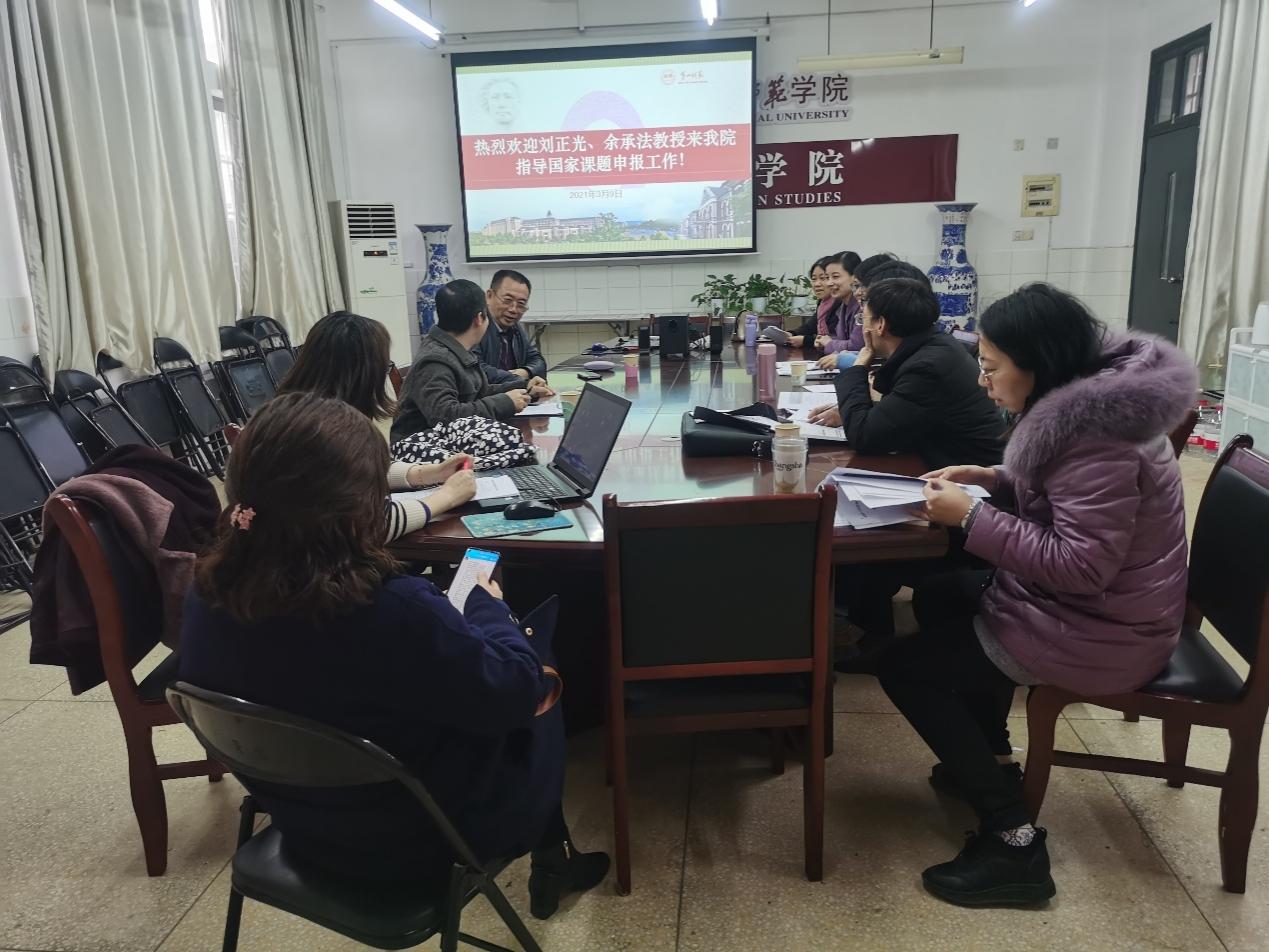 为提升2021年度全国教育科学规划课题与教育部人文课题申报质量,3月9日下午,应伟德国际1946bv官网“乐之”论坛邀请,湖南大学刘正光教授、湖南师范大学余承法教授来公司指导。会议由康响英副经理主持,公司教授、博士,与部分教师参与了此次会议。