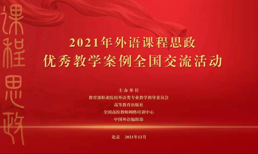 2021外语课程思政优秀案例全国交流活动于2021年12月11日在线上举行。公司李双、周敏、康响英、陈清、李静团队荣获特等奖。