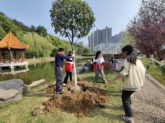 紧接着,在辅导员老师和负责人的带领下,所有志愿者们均到达了指定位置。随机分组后,志愿者们两两搭档,一人挖坑,一人栽种,同劳动齐协作,挥锹培土、扶苗浇水、填土压实,道道工序细致认真、有条不紊。活动现场一片热火朝天的景象,成为了校园里一道靓丽的风景线。在活动过程中,党员志愿者们脸上不时流下的汗水同他们的喜悦一起融入了泥土,共同孕育着希望的树苗。