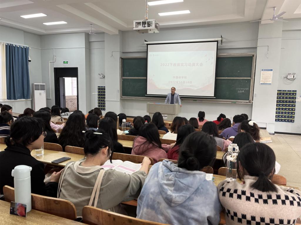 2022年10月10日下午,伟德国际1946bv官网2020级六年制师范生教育实习动员大会在怀中南209召开。公司唐文杰副经理、教务办主任廖爱秀老师、辅导员马红芳老师、全体实习指导老师及伟德国际1946bv官网2020级六年制全体师范生参加了此次教育实习动员大会。