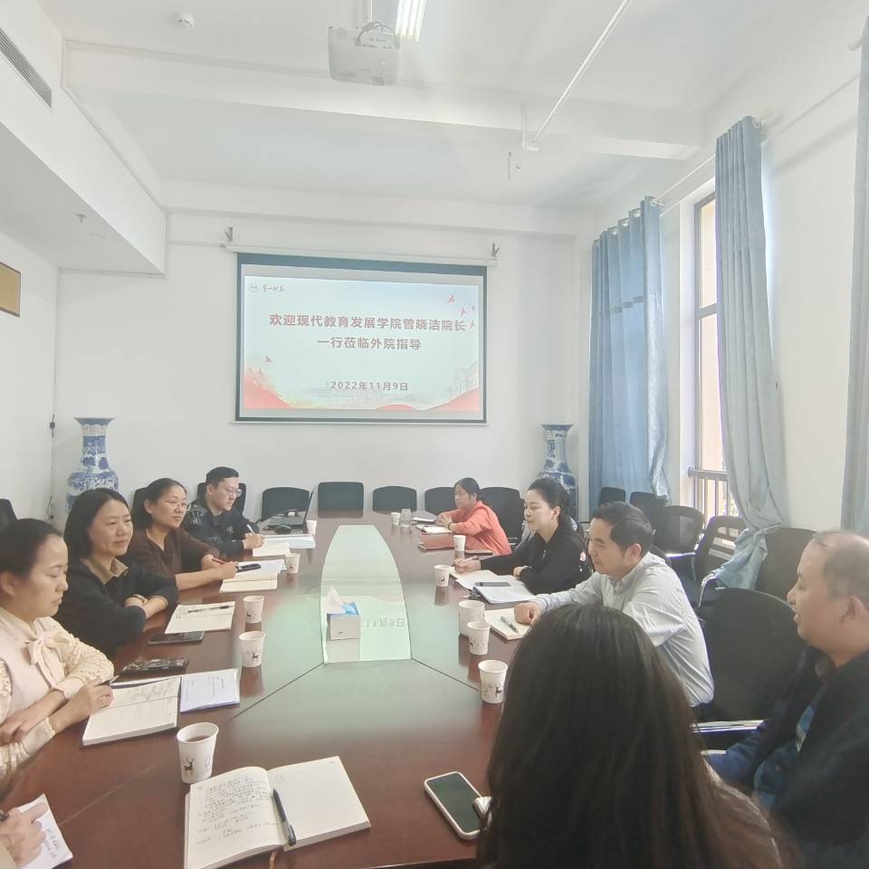 11月9日下午,现代教育公司书记祝娅、经理曾晓洁一行来到伟德国际1946bv官网调研教师教育培训等工作。公司全体院领导、主持公司国培工作的刘明东教授、唐新萍、李彩琴、廖嘉琰老师参加了本次座谈会。调研会由陈圣白副经理(主持行政工作)主持。