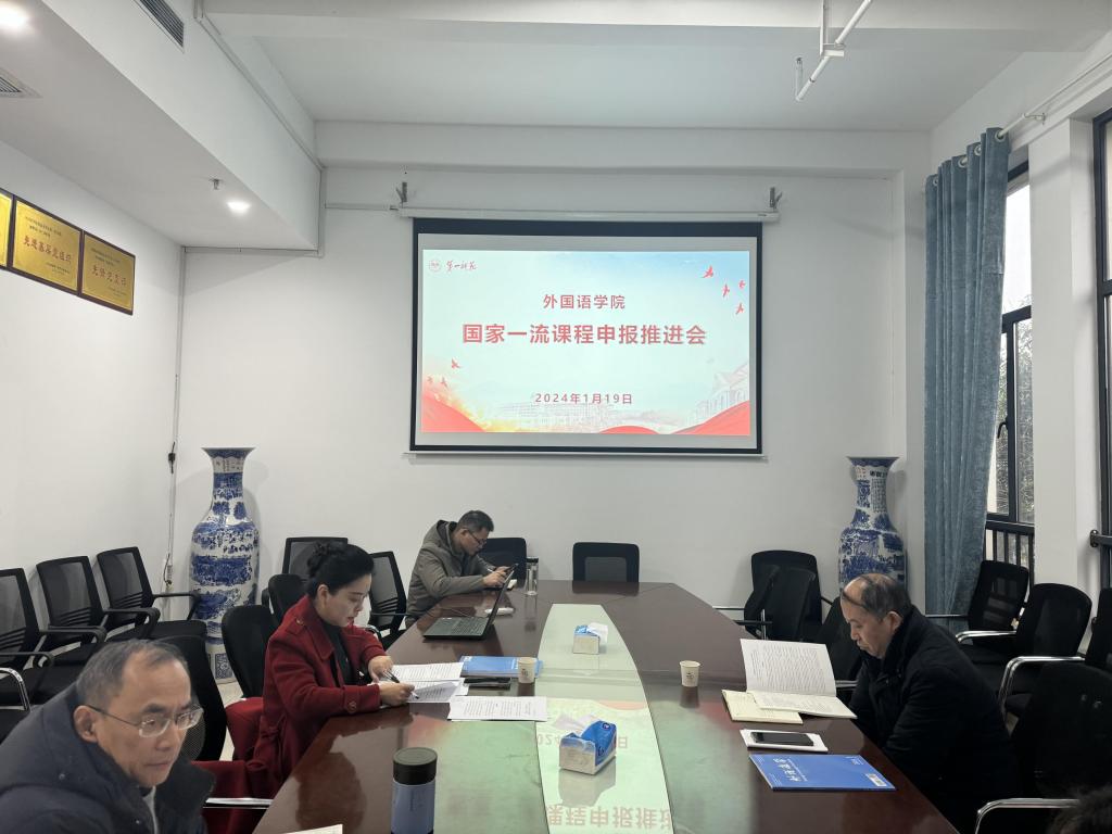 为推进国家一流课程建设工作,进一步加强课程建设工作规划与指导,1月19日,公司在百熙楼223召开国家一流课程申报推进会议,全体院领导、综合英语课程申报团队成员参会。