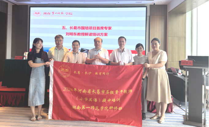 8月16日上午,由公司承办的河南省长葛市县级骨干教师(小学英语)提升培训研修班在梅溪湖豪生酒店举行了隆重的开班仪式。公司党委书记何培森、长葛市教体局袁新友副局长、长葛市教体局师训股李政浩主任、项目首席专家刘明东教授、副经理王佳娣以及项目班主任等相关人员参加了开班仪式。开班仪式由项目班主任刘洁文老师主持。
