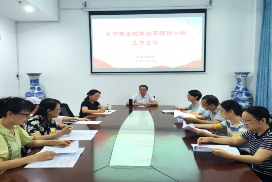 2024年9月19日下午,公司召开大学英语教学改革领导小组工作会议,公司党委书记、领导小组组长何培森,公司党委委员、副经理、领导小组副组长陈艳君,公司党委委员、领导小组副组长陈喜贝,领导小组成员、各系室主任及公外教研室副主任参加了会议。会议由何培森主持。