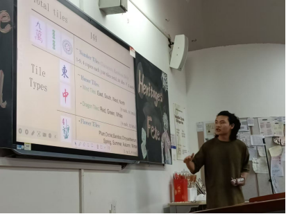 同学们在活动开始前领取了精心制作的宣传册,提前对本次活动有了初步了解。本次英语角聚焦于4种独具特色的中国非遗文化:中国麻将、苗族银饰、木偶戏和糖画。宣传册中丰富的图片和生动的文字介绍,清晰地呈现了这四大非遗文化的概要,为同学们揭开了非遗文化的神秘面纱,激发了大家对传统文化的浓厚兴趣。
