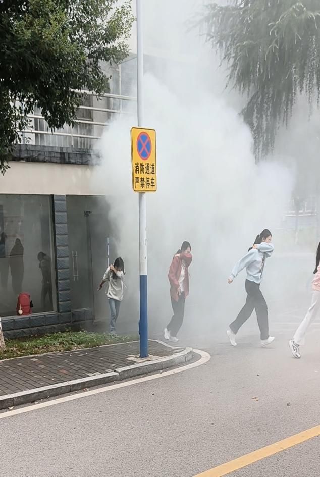 活动第三阶段是应急疏散演练。公司领导和辅导员老师们、教官以及志愿者和同学们先在国基广场集合,了解消防应急疏散演练的注意事项。然后志愿者们带领队伍前往女生宿舍5栋开始正式演练。随着模拟火灾警报声响起,各楼层志愿者迅速到位,按照预先规划的安全路线,引导师生捂住口鼻、保持弯腰低姿快速撤离。整个过程中,全体人员秩序井然,无拥挤、无停留,仅用5分钟便全部安全抵达指定集合区域。本次消防应急疏散演练活动顺利结束。