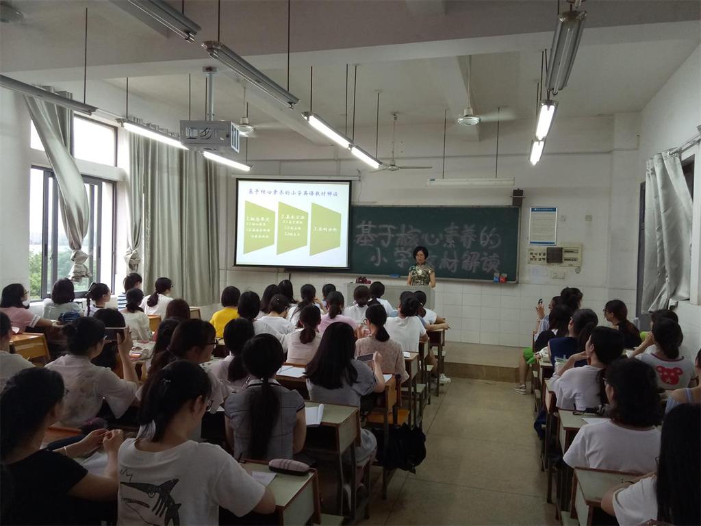 2017年6月10日下午,在文科楼C栋404教室,伟德国际1946bv官网孙军秀副教授为公司14级同学做了一场题为“基于核心素养的小学英语教材解读”的精彩讲座。
