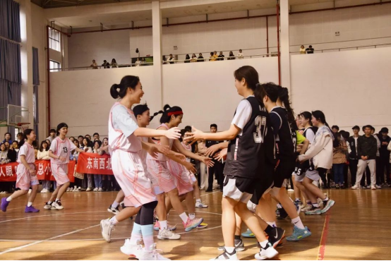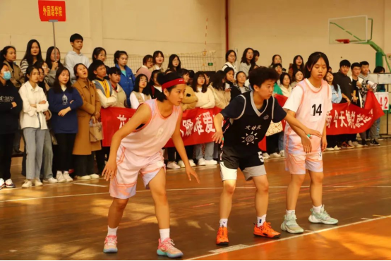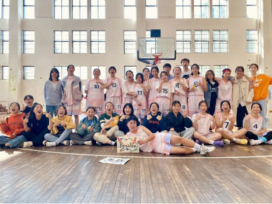 她们等来了第一场小组赛,紧张、激动。她们换上球服,踏上“战场”,场上的五个人都在拼命奔跑,完成每一个位置的使命,为队友拿到球,投进球,拿下分数,场下的人嘶声力竭地喊着“外院!加油!”,直到拿下第一场比赛,然后欢呼、雀跃!