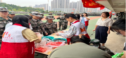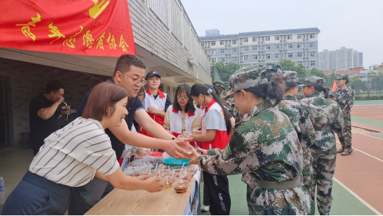 外院青年志愿者协会的志愿者们也为刻苦训练的同学们精心准备了冰凉粉,酸甜的口感为辛苦训练的新生们送去了一股清凉。伴着领导老师们的关爱、学姐学长们的呵护,新生们更加充满斗志,在训练中更加努力,并立志在军训汇报表演中呈现出最佳状态。
