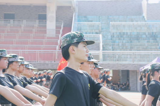 他们用脸颊上的汗记录了长沙超过40度的高温,用磨破的鞋记住踢了无数遍的正步和滚烫的大地,用晒伤的红斑铭记住了每次的转头、抬手、踢腿。但烈日的暴晒击垮不了青年人坚定的意志;华灯初上的夜晚模糊不了新兵们努力的身影;挥洒的汗水淹没不了学子们坚守的信念;全身的疲惫击不败外院人燃起的斗志。