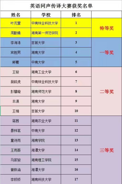 本次大赛由中共湖南省委外事工作委员会办公室主办,中南林业科技大学承办,旨在为推动湖南省外向型经济的发展储备高级外事翻译人才,促进湖南省高级翻译人才的培养。成绩的取得是选手努力付出,指导老师罗亦陶、张丽红精心培养的结果,体现公司在外语专业人才培养质量的提高,是外院为“品质一师”所做出的新贡献。