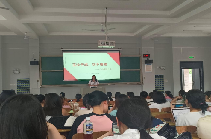 5月28日下午,伟德国际1946bv官网考公&申请升学专题讲座在怀中南208教室举行。本次讲座由公司党委副书记戴建宇主持,罗梅斯和余思雨担任主讲进行经验分享。