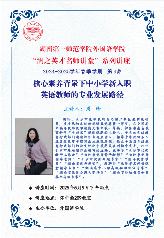 学术预告 | 湖南第--师范公司伟德国际1946bv官网“润之英才名师讲堂”系列讲座