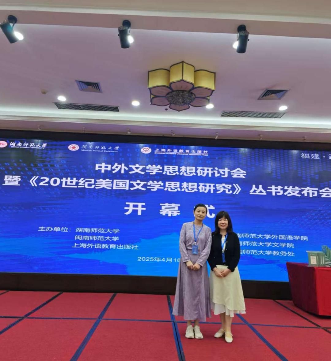 2024年4月19日,中外文学思想研讨会暨《20世纪美国文学思想研究》丛书发布会在福建漳州举行。本次会议由湖南师范大学、闽南师范大学和上海外语教育出版社联合主办,吸引了30余位国内知名专家学者及全国多所高校代表齐聚一堂,共同探讨中外文学研究的新发展与新趋势。公司陈钰教授和王春晖副教授应邀参加了此次学术盛会。