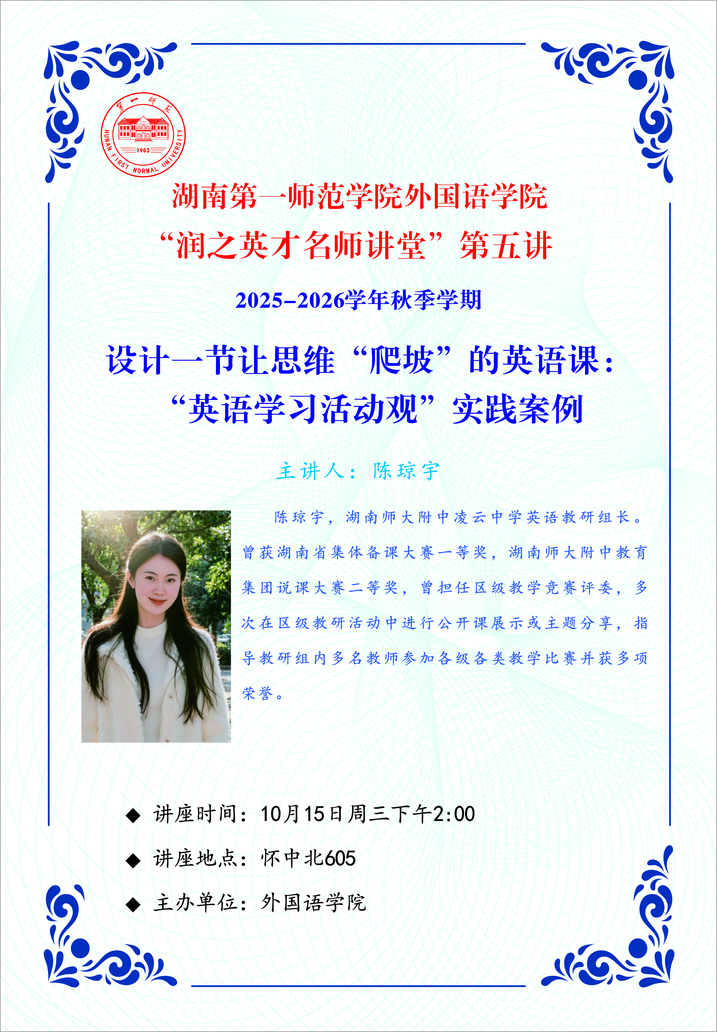 学术预告|bevictor1946韦德官网“润之英才班名师讲堂”第五讲