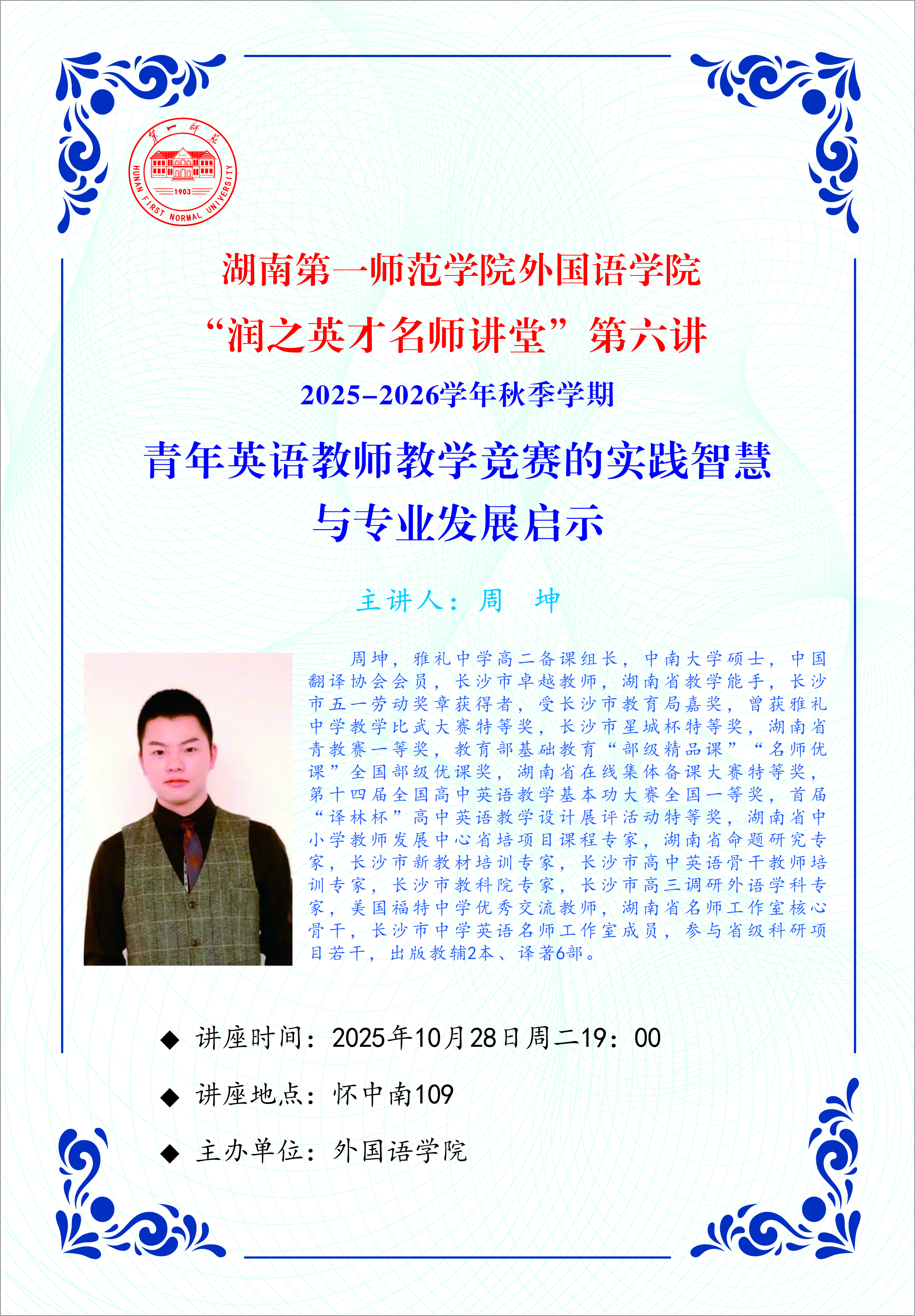 学术预告|bevictor1946韦德官网“润之英才班名师讲堂”第六讲