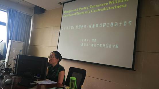 第一场是刘霞老师的以“匕首与诗歌——析田纳西·威廉斯戏剧主题的矛盾性”为主题的讲座。刘霞老师首先给同学们介绍田纳西·威廉斯。接着谈到了她自己第一次接触田纳西·威廉斯的戏剧并且被他吸引的故事。最后介绍了他的几部著名的话剧像《欲望号街车》、《玻璃动物园》等,同学们听得津津有味。讲座结束时刘霞老师呼吁同学们多去梅溪湖大剧院欣赏话剧,感受话剧的美。