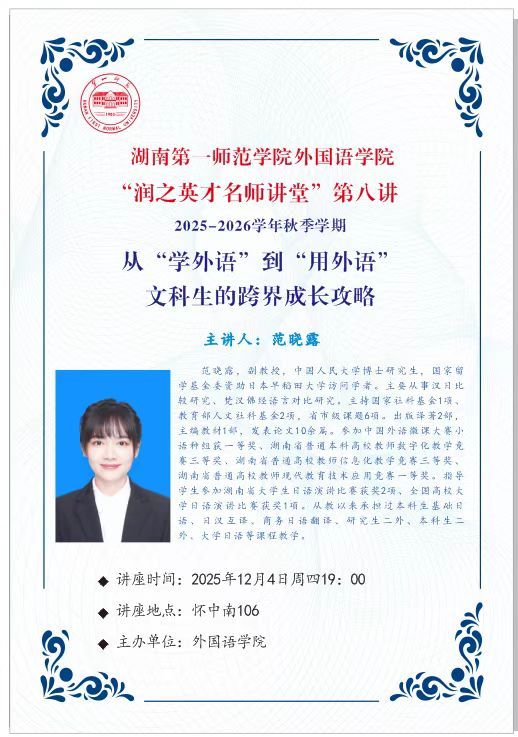 学术预告|bevictor1946韦德官网“润之英才名师讲堂”第八讲