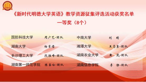 公布《新时代明德大学英语》教学资源征集评选活动获奖名次