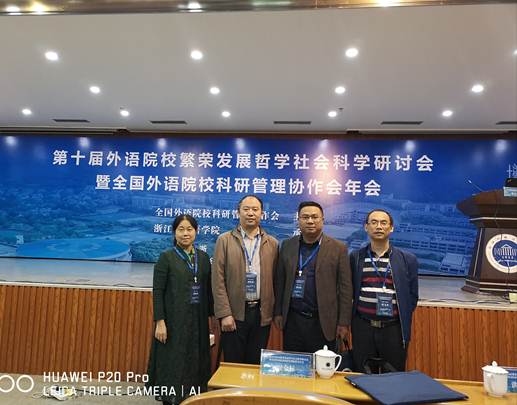 第十届外语院校繁荣发展哲学社会科学研讨会暨全国外语院校科研管理协作会年会于2018年10月24日至26日在浙江伟德国际1946bv官网召开。来自全国40余所外语院校(包括台湾义守大学)、中国高等教育学会和社会科学文献出版社的领导、专家和老师90余人到会。公司刘祥清、康响英、唐文杰、刘永红在科研处长赵奇钊带领下参加了本次学术盛会。