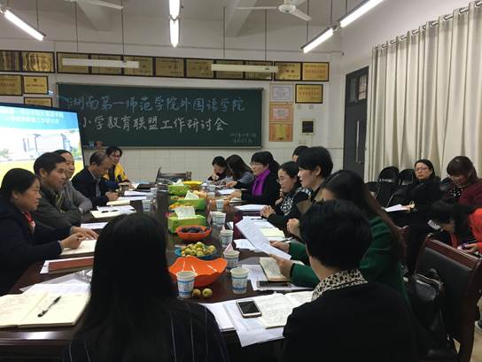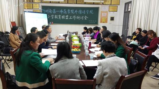 2017年10月17日下午,伟德国际1946bv官网小学教师教育联盟工作研讨会在伟德国际1946bv官网会议室举行。会议由伟德国际1946bv官网经理刘祥清主持。开福区三角塘小学范宏琳董事长、高新区明华双语实验小学左鹏董事长、岳麓区第一小学刘秋红书记、岳麓区博才咸嘉小学段蓉春副董事长、岳麓区实验小学陈阳副董事长、高新区麓谷小学曹欣副董事长莅临了会议。伟德国际1946bv官网、公共外语教学部领导出席会议,伟德国际1946bv官网和公外部部分老师参加研讨。