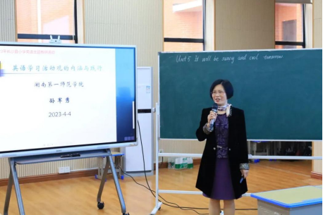 2023年4月4日,长沙县第一师范公司星沙实验小学举办了小学英语“智慧教育背景下的英语学习活动观”主题教研活动。公司孙军秀副教授为此次研讨活动做了题为“英语学习活动观的内涵与践行”的主题讲座。