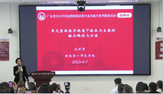 2023年4月7日,广东省惠州市博罗中学中洲实验公司举办了“广东省中小学英语教师阅读教学素养提升”主题教研活动。公司孙军秀副教授为此次研讨活动做了题为“单元整体教学视角下绘本与主教材融合路径与方法”的主题讲座。