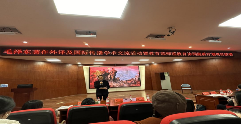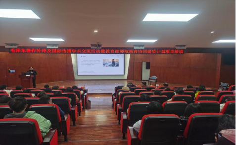 为深入探讨毛泽东著作及思想的传承创新,促进毛泽东著作和思想国内外的传播与接受,推进教育部师范教育协同提质计划实施,提高师生对红色经典作品的价值认同,12月19日下午,公司举办毛泽东著作外译及国际传播学术交流暨教育部师范教育协同提质计划项目活动。该活动由湖南省红色经典国际传播研究基地和公司翻译研究所承办,是公司120周年校庆的公司特色学术活动之一。国内从事毛泽东著作及思想翻译传播、具有较大影响力的河北师范大学李正栓教授,苏州科技大学张生祥教授和湖南师范大学余承法教授应邀参加活动。科研处肖攀处长、罗燕副处长,伟德国际1946bv官网全体院领导、从事翻译研究的教师和外院润之班与翻译班员工参加了活动。