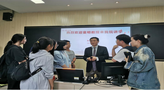 童明教授的讲座首先提出了“悲剧因何引起愉悦感”的问题。他从亚理士多德对悲剧情感的论述入手,指出著名的“怜悯和恐惧”悲剧情感假说无法充分解释悲剧快感的来源,故提出“悲剧的本质不是“悲惨”而是“力量”,是人站立在天地之间直面命运的严酷而毫不畏惧的“力量”。童明教授从希腊悲剧对酒神的崇拜谈到尼采的悲剧理论,从《哈姆雷特》、《麦克白》中的独白,谈到《八月之光》和沃尔夫《达洛维夫人》,引经据典,侃侃而谈,引起了员工们强烈兴趣。讲座后,师生就尼采超人哲学、海明威作品中的悲剧等话题与童明教授互动交流。
