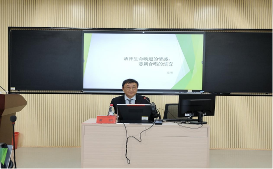 2024年4月26日晚19点至21点半,一师讲堂285期在伟德国际1946bv官网怀中北602教室隆重举行。本期讲堂由著名英美文学专家童明主讲,讲座的主题是“酒神生命唤起的情感:悲剧合唱的演变”。讲座由副经理王佳娣主持,来自长沙公司、公司伟德国际1946bv官网及机关处室的部分教师,22级和23级润之英才班员工等共80余人聆听了本次讲座。