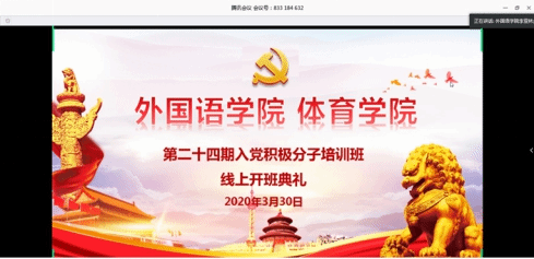 高高飘扬在疫情斗争第一线的党旗深深吸引了青年学子,向高高飘扬的党旗迅速靠拢……,300余名员工向党组织递交了一封封火热的入党申请书,经推优、考察等规定程序,两所公司最终共确定了138名入党积极分子。为进一步增强他们的党性认识,深化党的基本理论、基本路线和基本纲领的教育,两院从学习强国等网络平台精心挑选《学党章系列课程》《<共产党宣言>和共产党员的信仰与使命》《十九届四中全会精神解读》《战“疫”如何彰显中国制度优势和治理优势》等优质线上课程对入党积极分子开展培训。3月30日晚19时,开班典礼由公司党总支书记李亚林主持,体育公司党总支书记谢培松以《不做精致的利己主义者》为主题进行开班动员,号召同学们志存高远、学做合一、提升素养,树立共产主义理想,把自己的人生追求同祖国和民族的前途命运联系起来。