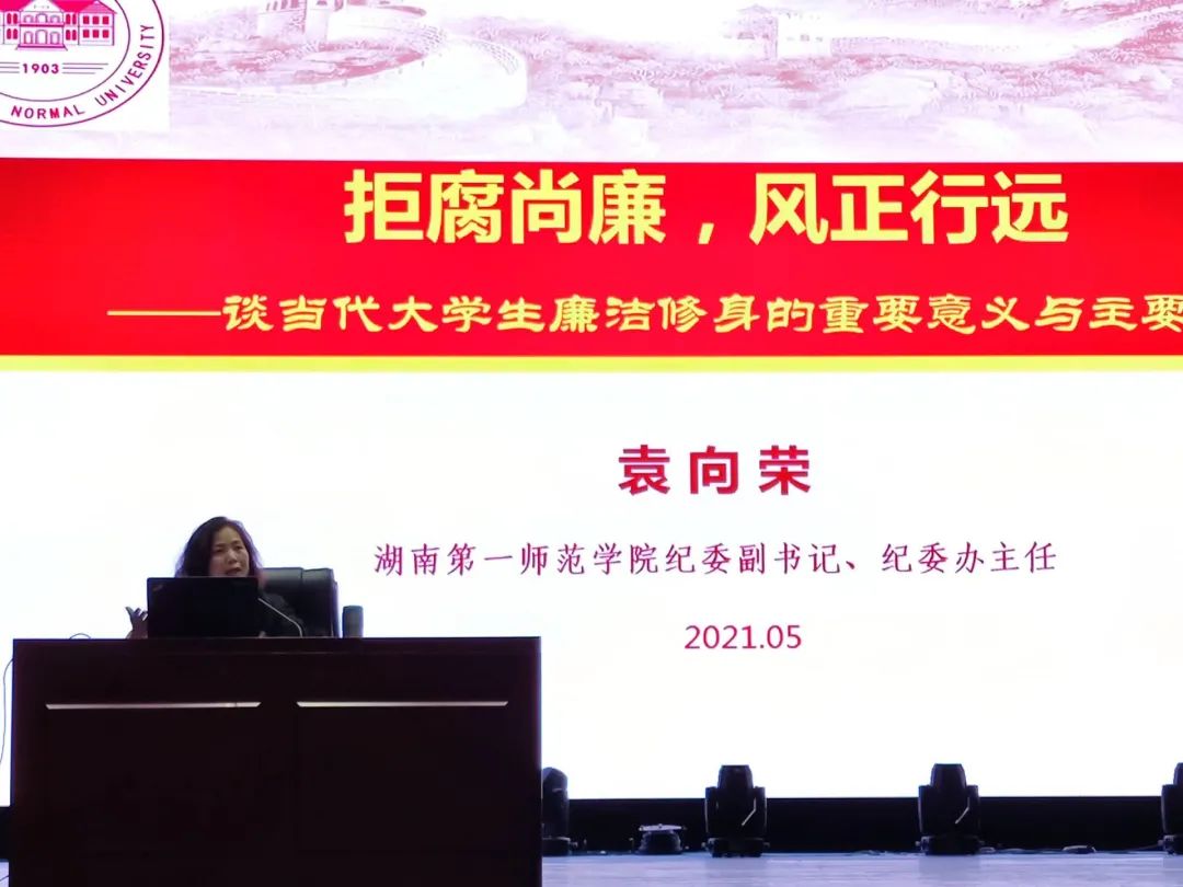 5月6日晚,校纪委副书记、纪委办(监察专员办公室)主任袁向荣在田汉剧院为入党积极分子上了一堂题为“拒腐尚廉,风正行远——谈当代老员工廉洁修身的重要意义与主要途径”的党课。教育科学公司、伟德国际1946bv官网、商公司三个公司的党总支负责人、全体辅导员及1000余名入党积极分子、发展对象、员工干部听取了党课。