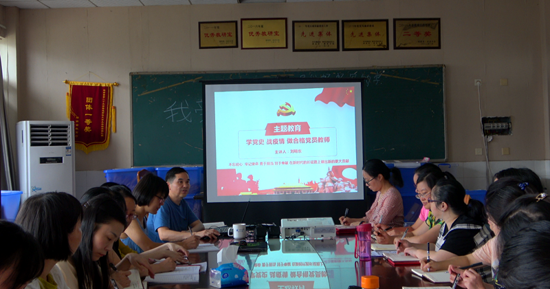 为隆重庆祝中国共产党成立99周年,深入学习贯彻习近平新时代中国特色社会主义思想,巩固拓展“不忘初心、牢记使命”主题教育成果,严格落实“三会一课”制度,丰富党员教育内容体系,增强党员教育的针对性、有效性,引导广大党员做新时代中国特色社会主义“四有”好教师,2020年7月16日,大学英语教研室党支部组织开展了以“学党史 战疫情 做合格党员教师”为主题的专题党课集中学习活动。