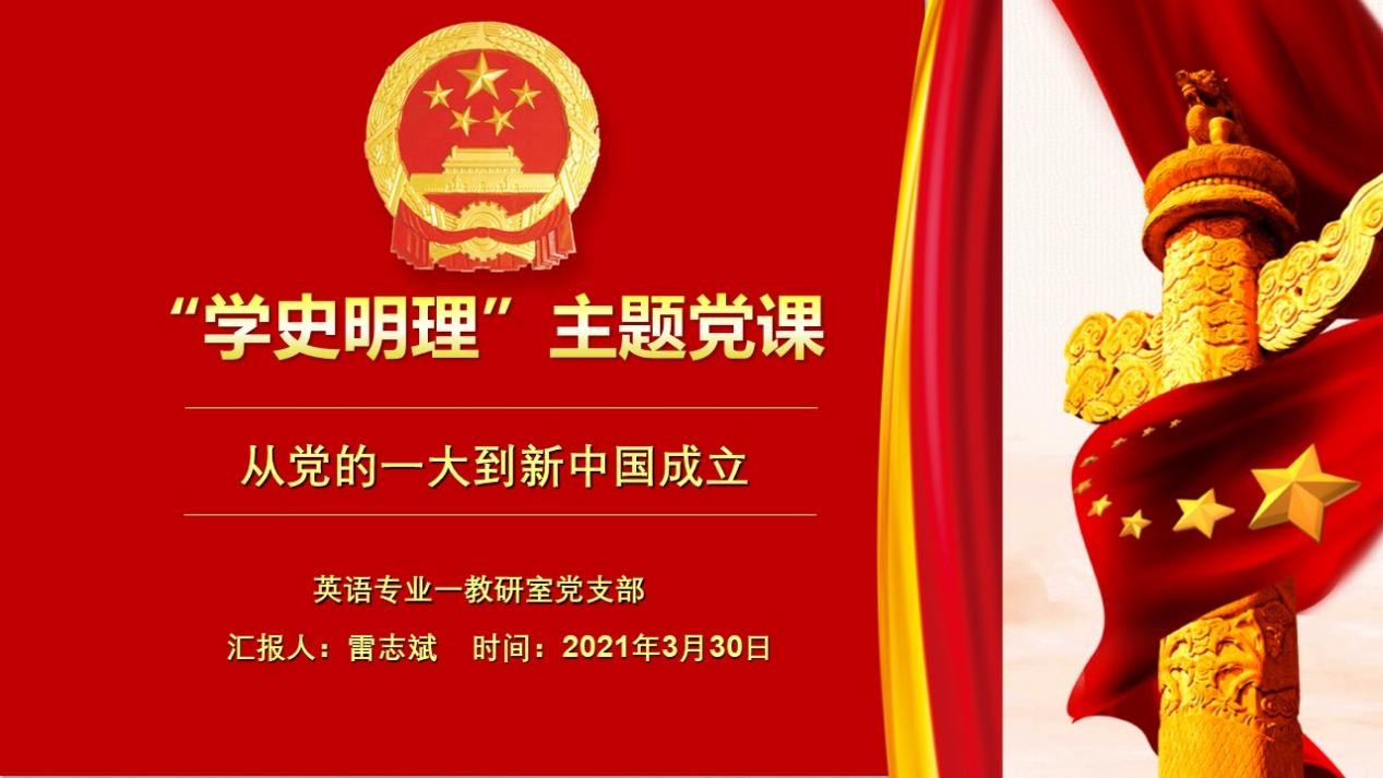 3月30日晚,英语专业一教研室党支部通过腾讯会议形式召开 “学史明理”专题学习研讨会,支部全体党员参加了研讨会议。