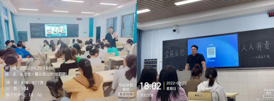 公开课上,辅导员老师带领同学们学习了《中华人民共和国国家安全法》、《中华人民共和国刑法》、《中华人民共和国反恐怖主义法》、《湖南省实施<中华人民共和国反恐怖主义法>办法》以及《公民反恐怖防范手册(2021版)》等反恐法律法规和公民反恐知识,要求同学们增强安全防范意识,提高学法懂法的主动性和遵纪守法的自觉性。