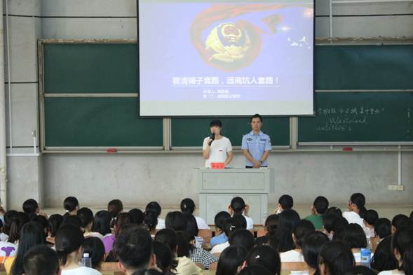 本次安全教育课共分三个主题,分别是防范电信网络诈骗、防范非法校园贷、防范传销陷阱。就如何防范电信网络诈骗,禹警官以徐玉玉事件为例,深入剖析了各类诈骗的手法,告诫同学们诈骗集团善于利用新技术、懂得心理学、会抓新热点、运营集团化,且大部分属于跨国作案,破案难度大,因此大家一定要保护好个人信息,不给陌生人转帐、不给陌生人验证码、不扫不明来历二维码、不被遥控操作ATM与网银。就如何防范非法校园贷,禹警官向同学们分析了正规贷款和非法校园贷的区别,介绍了非法校园贷的套路,号召同学们树立正确的消费观念,加强对金融知识的学习,了解相关的法律法规,避免掉入校园贷陷阱。禹警官还对传销的形式、特征、后果以及自救方式进行了讲解,对公安机构打击诈骗和传销的情况进行了介绍。在讲课过程中,禹警官采取微博、微信互动的方式,别处心裁地设置了有奖问答环节,同学们听得认真,答得踊跃,课堂气氛十分活跃。